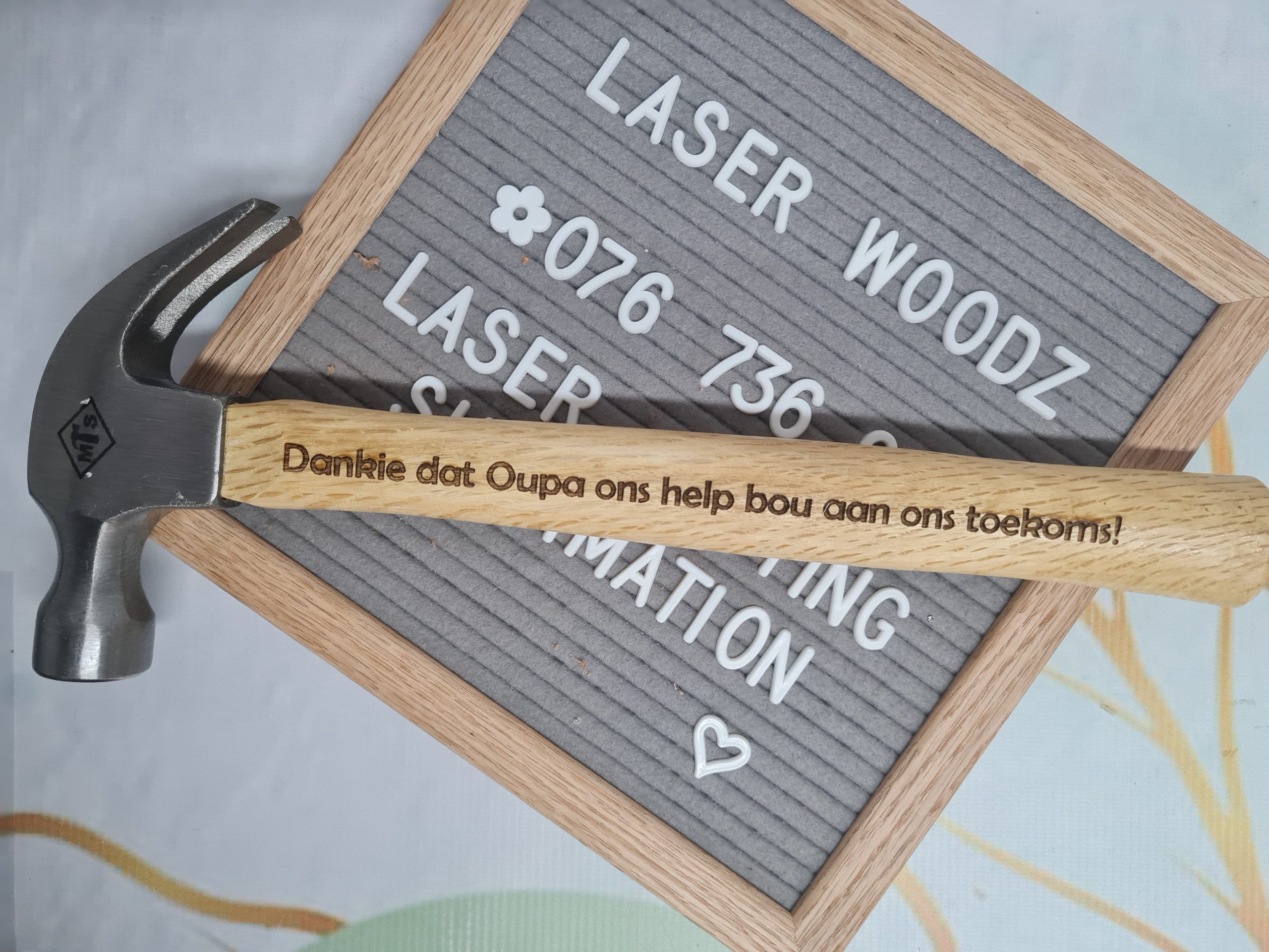 Standard claw hammer with personalised engraving (vertical)